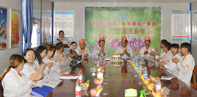 (通訊員 李宇東)9月15日,北方建設集團工會(huì )主席李桂萍攜兩辦副主任孟慶忠及工會(huì )副主任王文娟一行3人,來(lái)到100萬(wàn)錠紡織項目部為5位一線(xiàn)員工舉辦了一場(chǎng)以“相親相愛(ài)一家人”為主題的集體生日活動(dòng)。