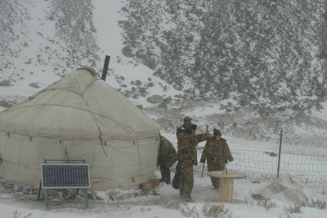 看著(zhù)外面惡劣的天氣,駐137團8連“訪(fǎng)惠聚”工作隊隊員和連隊“兩委”成員是心事重重。雖然在10月16日這天,連隊“兩委”成員和工作隊隊員驅車(chē)深入山區給連隊職工通知了要變天的消息,希望他們盡快從蘇聯(lián)溝等地把羊群趕回冬窩子,提前做好預防冬災的準備,但是大家仍是擔心不已。